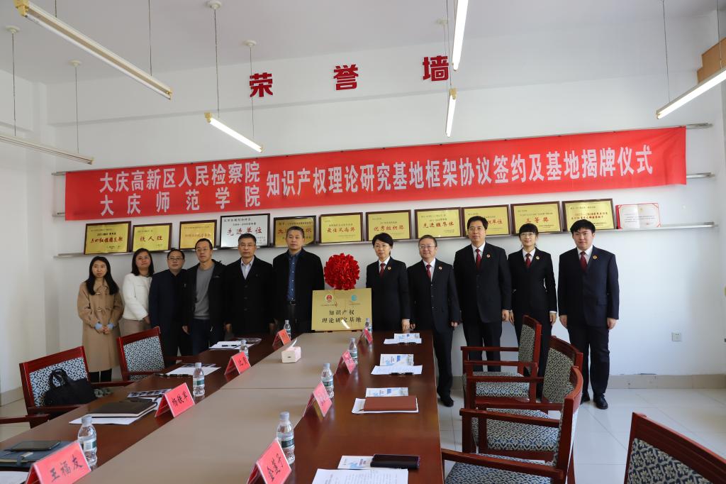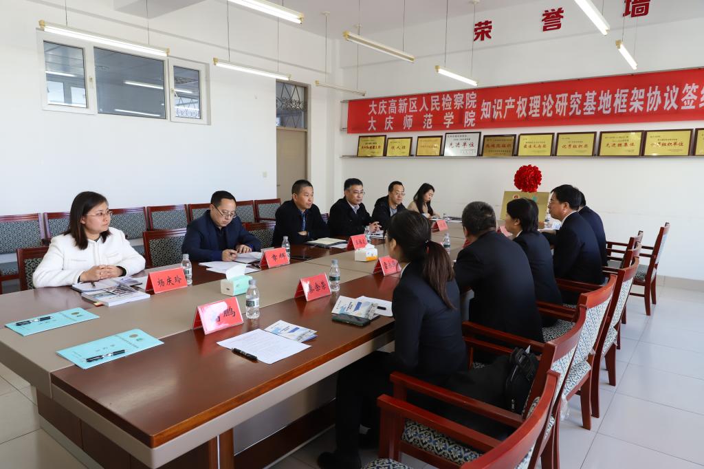2023年4月26日上午,大庆高新区人民检察院与伟德国际victor1946会签共建知识产权理论研究基地框架协议仪式在伟德国际victor1946会议室举行。高新区人民检察院检察长金莲子、伟德国际victor1946副董事长王福友代表双方签署知识产权理论研究基地框架协议,并共同为知识产权理论研究基地揭牌。伟德国际victor1946经理杨铁军主持了签约仪式。
