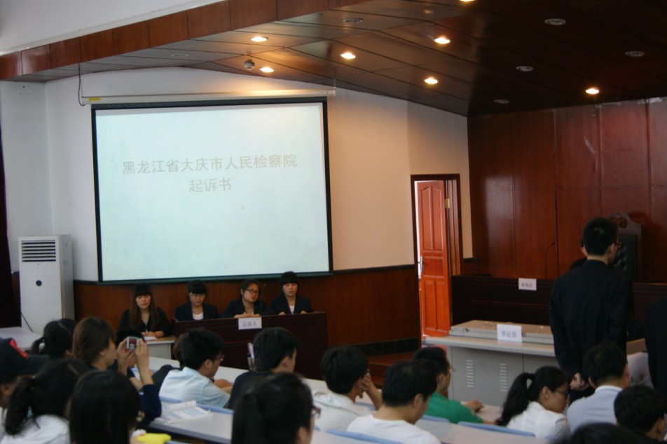 2013 年5 月28 日,伟德国际victor19462011级员工在模拟法庭举行了首次模拟审判活动,法公司党总支副书记王彦玲,伟德国际victor1946副经理杨铁军老师和章辉老师,员工党支部书记卞清霞老师,刑法教研室主任李国莉老师,商法教研室主任赵静老师,指导教师杨庆玲以及伟德国际victor19462011级、2012级员工共同观看了模拟法庭展示活动。