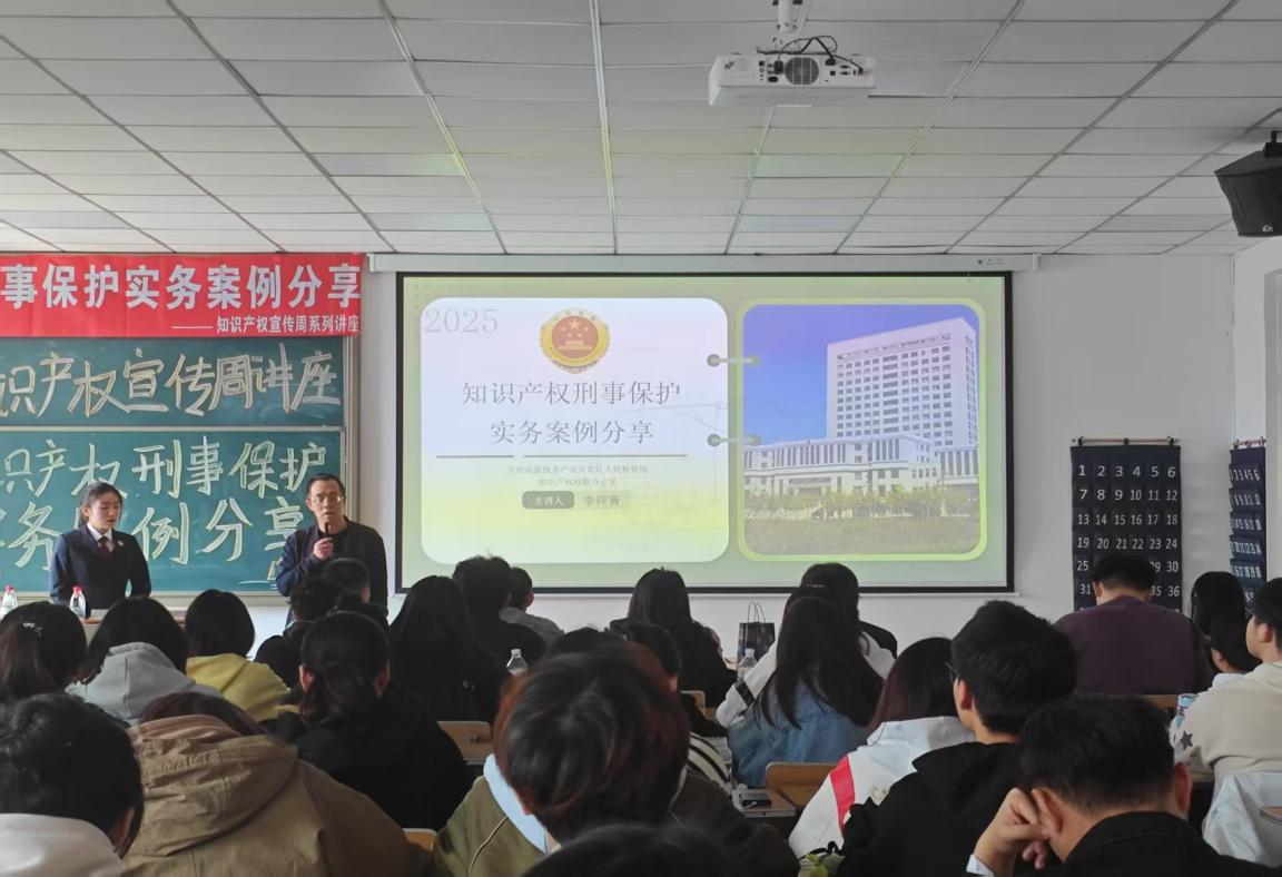 2025年4月23日(周三)13时30分,知识产权专业实务分享会在伟德国际victor1946主楼 415 教室拉开帷幕。由大庆高新技术产业开发区人民检察院王安泽检察官带队,检察官助理李梓菁、李梓、高鹏、郭建元一行五人,为伟德国际victor1946 2023 级、2024 级知识产权专业学子带来了《知识产权刑事保护实务案例分享》专题讲座。