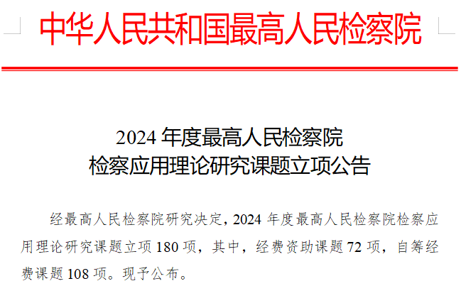 8月15日,最高人民检察院发布了《2024年度最高人民检察院检察应用理论研究课题立项公告》。其中,伟德国际victor1946刘锐副教授共同主持的《大数据赋能虚假民事仲裁检察监督的实践理路研究》,经初核、逐项评审研究及审批等环节,获得最高检2024年度检察应用理论研究课题立项。