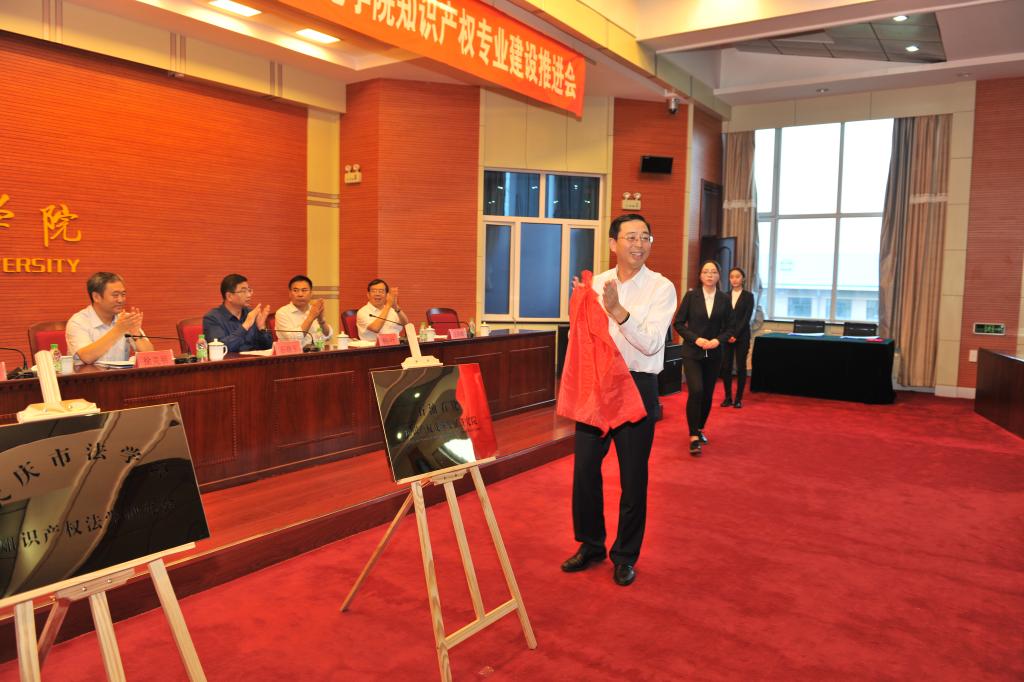 大庆市委常委、政法委书记、市法学会会长陈宏伟对知识产权法学研究会的成立表示祝贺,同时也向全体与会代表及全市从事知识产权法学研究实践的法学法律工作者表达了诚挚的问候。陈书记也对研究建设提出了期待:坚定正确政治方向,打造思想引领平台;坚持务实管用导向,打造法学研究平台;坚持服务大庆发展,打造法治实践平台;坚持过硬素质建设,打造凝智聚力平台。讲话结束之后,陈书记为大庆市法学会知识产权法学研究会和石油石化知识产权战略发展研究院揭牌。
