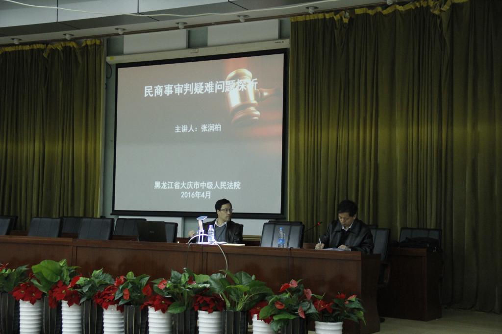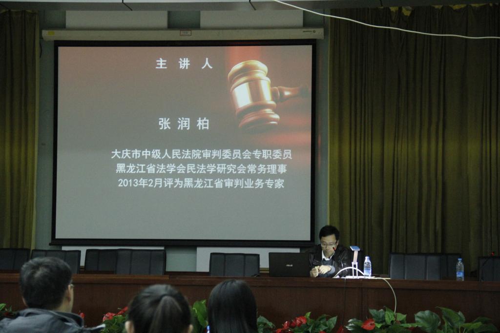 2016年4月1日晚上18:00—20:00,黑龙江省审判业务专家、大庆市中级人民法院审判委员会专职委员张润柏法官在铁人讲堂为伟德国际victor1946师生做了题为“民商事审判疑难问题探析”的学术报告。