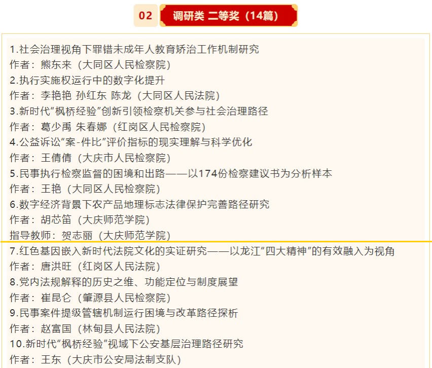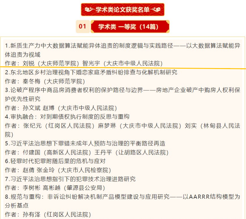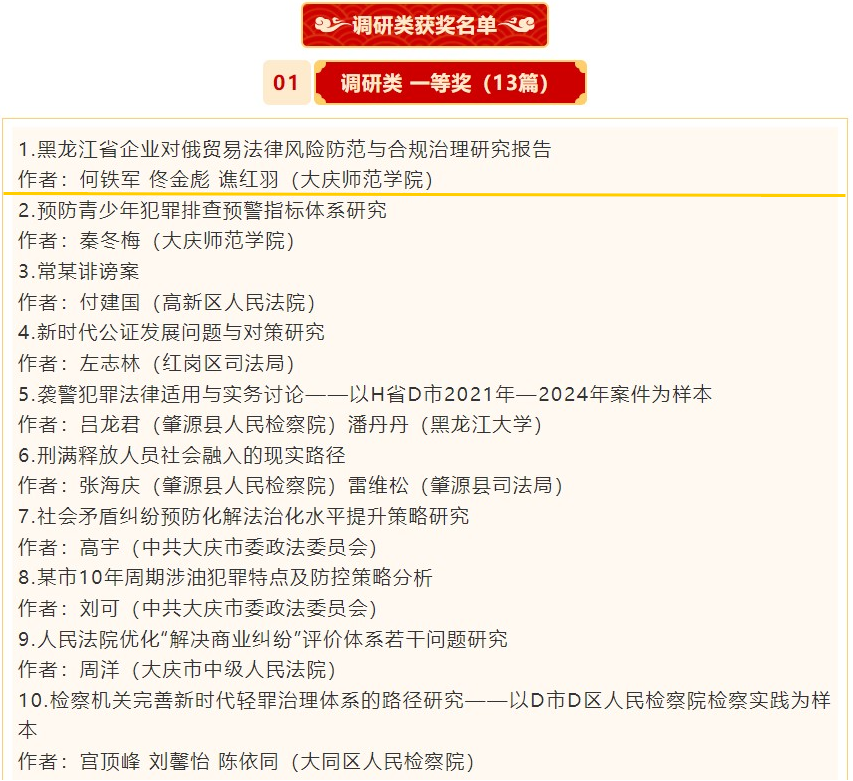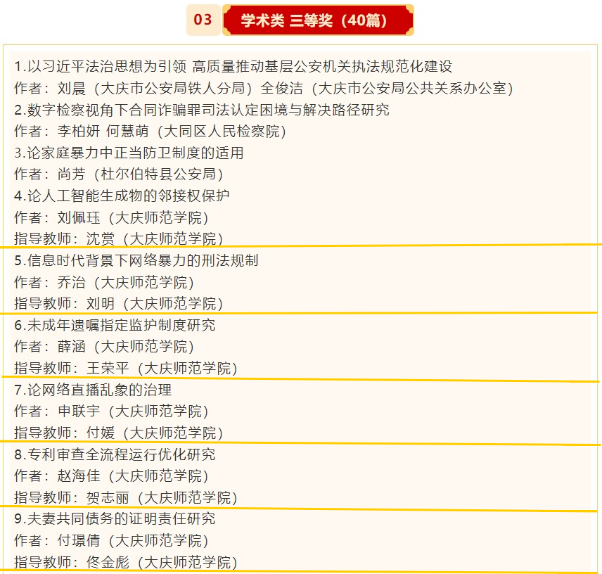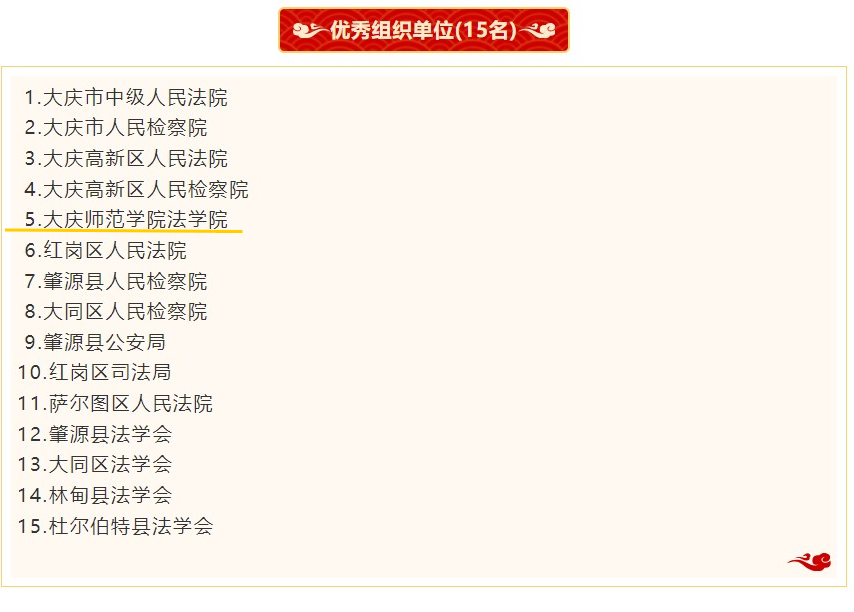 1月18日,大庆市法学会发布《2024年大庆市“学习贯彻习近平法治思想”主题征文活动表彰通报》。其中,伟德国际victor1946荣获学术类一等奖1项,二等奖5项,三等奖15项;荣获调研类一等奖1项,调研类二等奖1项,三等奖1项;伟德国际victor1946荣获优秀组织单位。