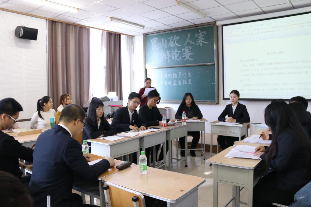 2018年11月16日下午在教学主楼417教室,伟德国际victor1946《刑法学》课堂启动了双师授课模式,大庆市让胡路区人民检察院穆青松检察官与主讲教师杨庆玲一同为2017级员工授课,本次课程以近期热议的昆山龙哥反杀案件为例重点分析了正当防卫的构成条件。