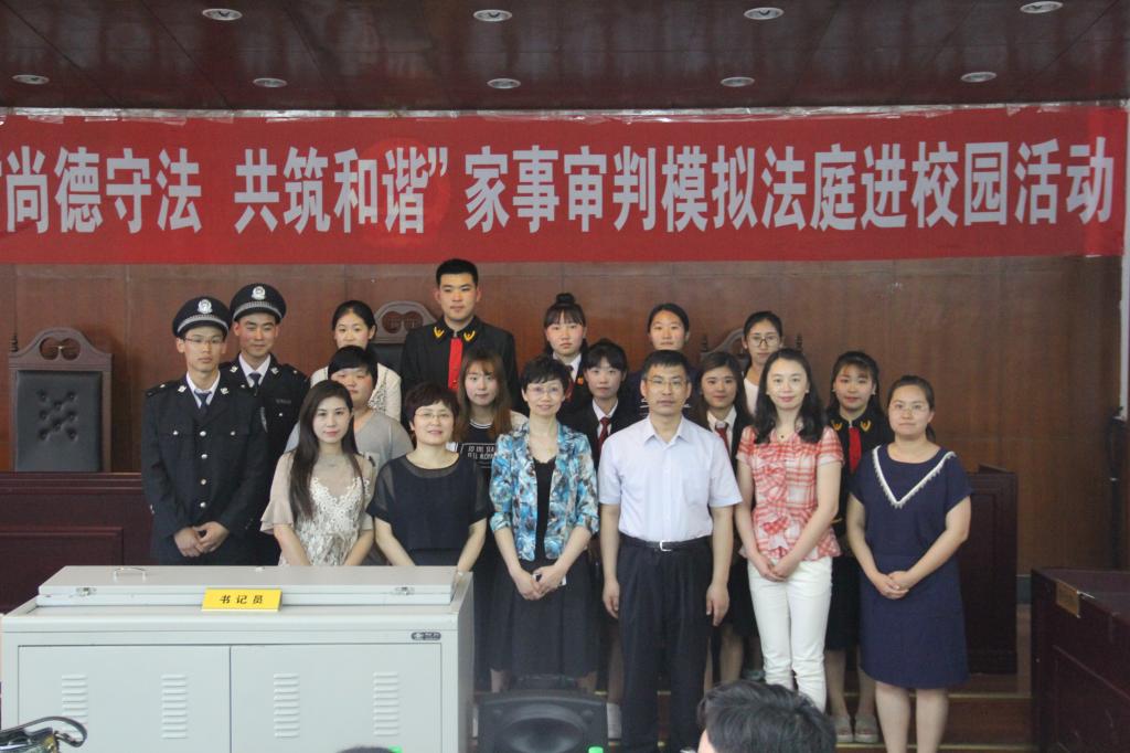 2017年6月15日,伟德国际victor1946与大庆市妇女联合会共同举办的"尚德守法,共筑和谐"家事审判模拟法庭进校园活动在主楼模拟法庭举行,大庆市妇女联合会副主席邢晋江、权益部部长蔡囡囡、伟德国际victor1946教务处副处长张丽霞、伟德国际victor1946行政负责人杨铁军出席了活动。活动由伟德国际victor1946宪法行政法与刑法教研室主任杨庆玲主持。