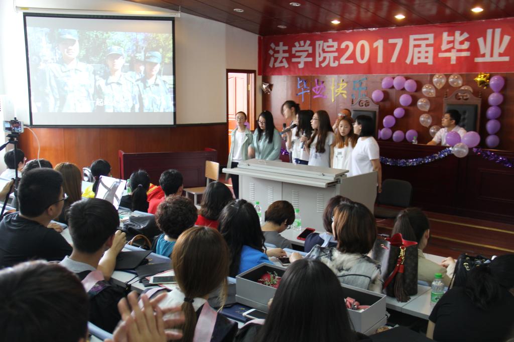 最后,典礼在毕业生与全体教师的依依惜别中落下了帷幕。所有老师站在台前,同学们排队依次同老师握手、拥抱、献花,老师和同学都热泪盈眶,很多同学泣不成声。这泪水凝聚了四年的师生情、同学情,凝聚了同学们对母校的依恋和不舍。四年师友昨日成追忆,千里之行今朝正起航,我们衷心祝福2017届毕业生一路顺风,前程似锦。
