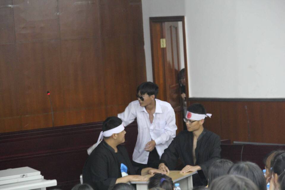 本次团活包括开场歌曲、诗朗诵、母校PPT介绍、抗日小品、大合唱、宣誓等几个环节。欢快的开场歌曲与慷锵有力的诗朗诵表达了同学们对母校的情感,而诙谐可爱的自编抗日小品表达对今年抗战胜利七十周年的喜悦之情;通过现代化的PPT展示,同学们更加了解母校的辉煌历程;由大一同学演唱的明天会更好表达同学们对母校的深深祝福;最后同学们以宣誓表达自己为母校做贡献的决心。本次活动圆满结束。
