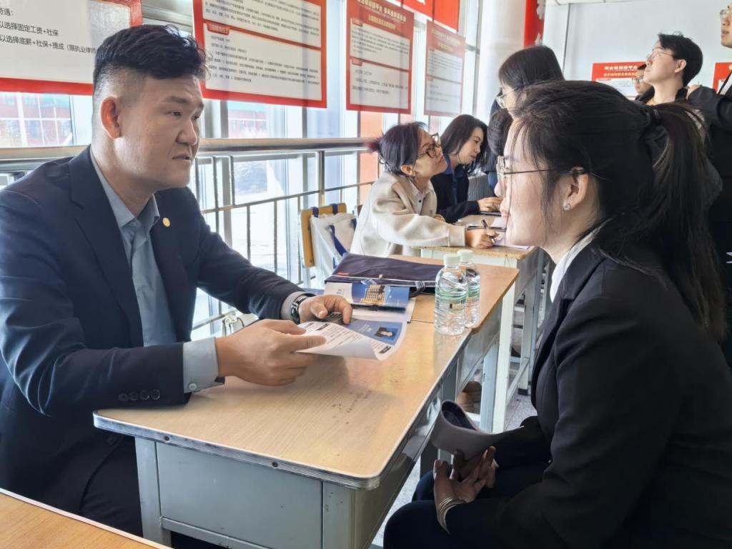 参观结束后,双选会准时开场,2025届、2026届毕业生满怀憧憬赶来,现场气氛热烈。公司学子主动与用人单位沟通交流,了解岗位需求、薪资待遇、职业发展等情况,有针对性地投递简历,以自信、热情、大方的姿态展示了扎实的专业知识、出色的实践能力和良好的综合素质,得到用人单位普遍认可,现场共签订26份就业意向书。