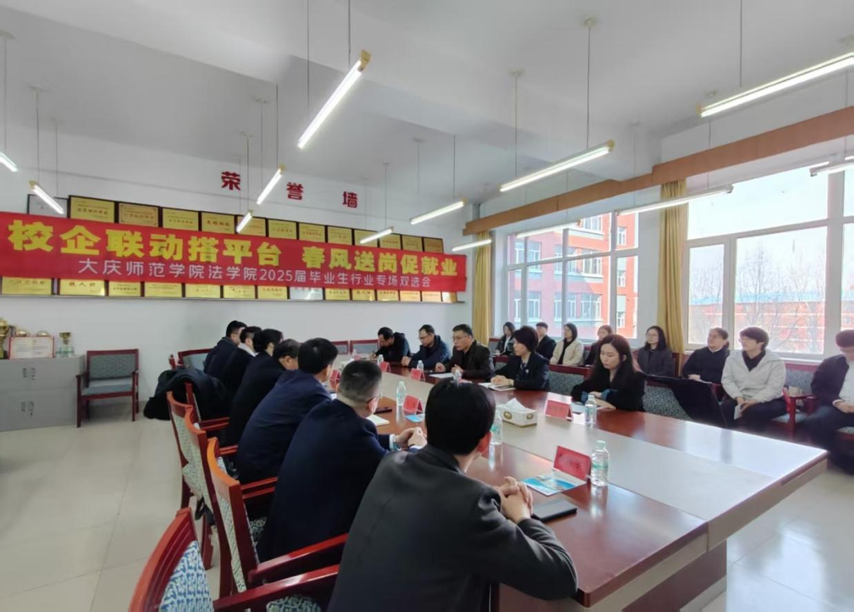 伟德国际victor1946、大庆市司法局、大庆市基层法律服务工作者协会、大庆市律师协会、各参会企业在主楼331进行了洽谈。经理杨铁军向与会单位表达了最衷心的感谢与最诚挚的欢迎,他表示,长期以来,各方在人才培养、就业实践等领域给予公司鼎力支持,期待未来能继续携手,共育英才、同促发展。