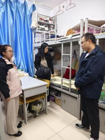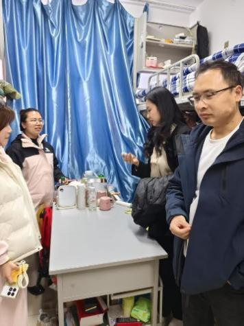 检查过程中,三位老师重点排查了寝室内务卫生、用电安全及消防安全隐患,尤其对违规电器、私拉电线、易燃物品、管制刀具等情况进行了严格检查,并向同学们强调了安全用电的重要性。同时,老师们与同学亲切交流,了解他们的生活学习情况及清明假期安排,叮嘱大家要增强安全意识,养成良好的卫生习惯,共同维护寝室环境。