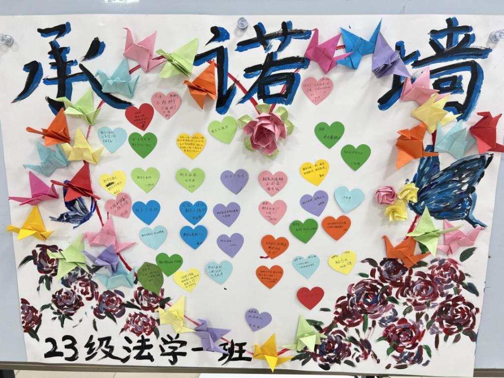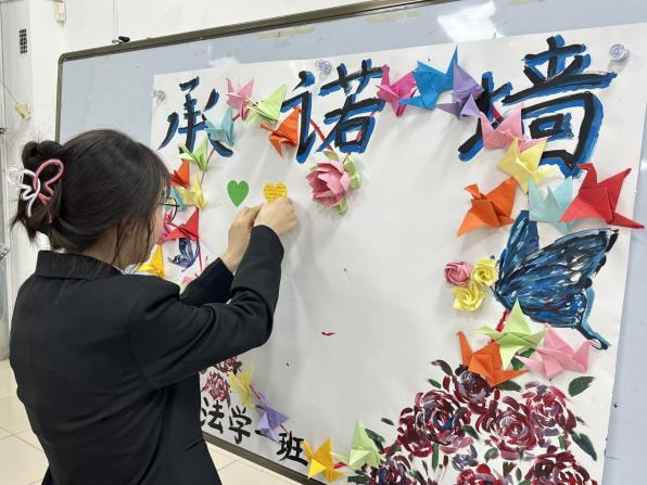在诚信考试动员环节上,每位同学在便签纸上写下自己的考试承诺,并将其粘贴于各班级精心创作的“承诺墙”上。这些发自内心的声音充分展现了同学们积极向上的学习态度和对未来的向往。