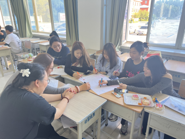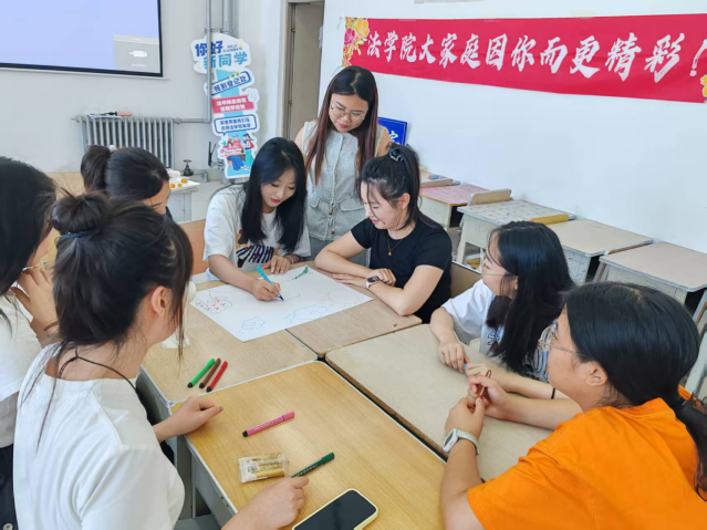随后,关老师组织同学们开展团体心理辅导活动。以寝室为单位,同学们分组进行团队建设任务。各组成员轮流执笔,围绕“家”“成长”“梦想”等主题进行“集体绘画”,共同完成一幅幅充满创意的作品。在展示环节中,各组组长依次介绍队名、队呼、队歌和创作理念,展现出寝室成员的个性与团队精神。合唱《团结就是力量》《强军战歌》更是将现场气氛推向高潮,同学们斗志昂扬,展现出团结一致的精神风貌。