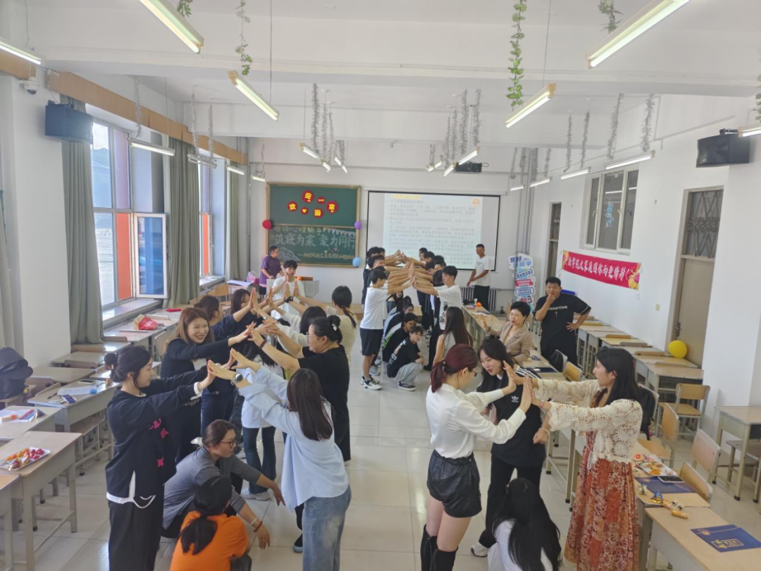 班会伊始,破冰游戏“击鼓传‘橙’”迅速活跃了现场气氛。象征“心想事成”的橙子在同学们手中快速传递,拉近了彼此的心理距离。随后的“松鼠和大树”游戏则考验同学们的反应能力与协作精神,现场笑声与欢呼声此起彼伏,不仅增强了团队默契,也让同学们在轻松氛围中建立初步信任。