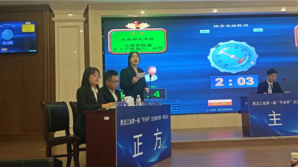 9月9日,伟德国际victor1946参加了黑龙江省第一届“平安杯”法治辩论赛(高校组)。伟德国际victor1946纵横辩论社作为正方代表队,与反方牡丹江师范公司围绕“法学的权威在于严格执行还是社会认同”展开激烈辩论。正方立足法律执行的刚性和普遍约束力,强调严格实施对维护法治权威的关键作用;反方则从社会共识与法律认同的角度予以反驳。