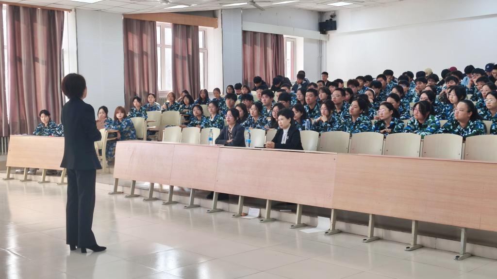 针对新生普遍关注的学习与就业衔接问题,唐莉书记提出“四年阶梯式发展计划”。大一通过职业测评与行业讲座完成自我认知与方向初探;大二依托实习基地参与法律援助、模拟法庭等实践,积累实战经验;大三明确目标方向,深化专业技能并备战资格考试;大四冲刺考研,备战校招、公考、司法考试等关键环节。她特别强调,用人单位更看重解决实际问题的能力,这些素养需在日常学习中主动建构,而非依赖临时突击。