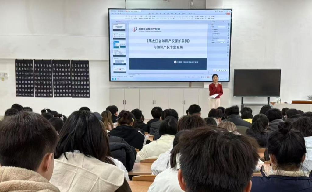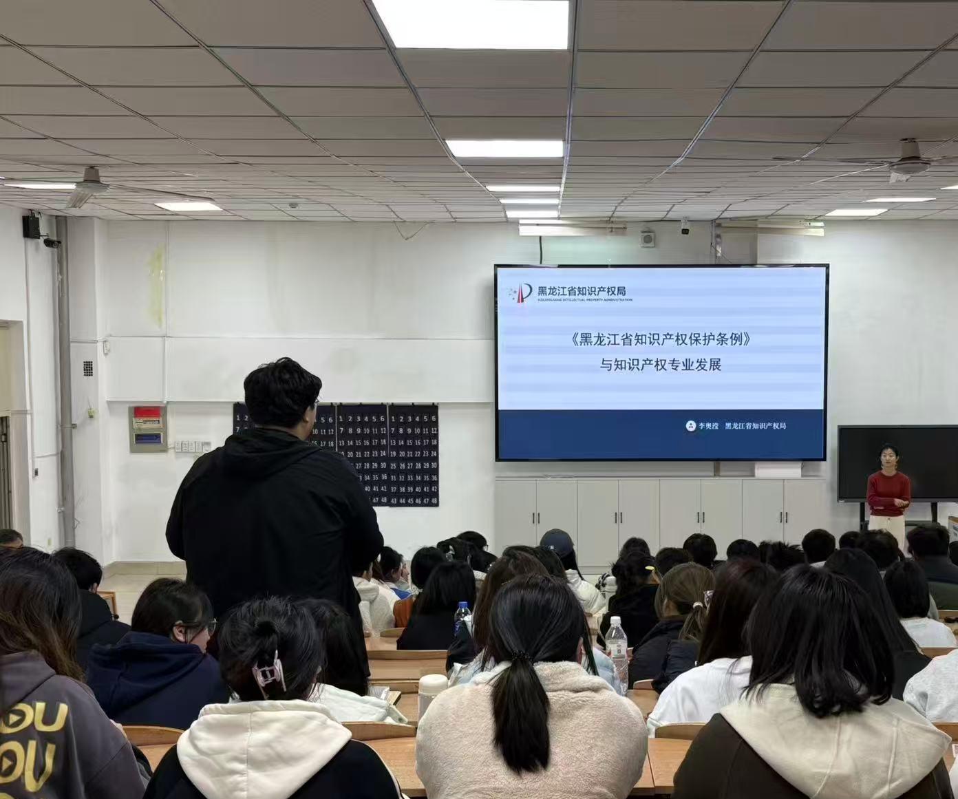 为深化知识产权实务型人才培养,将地方立法实践与教学研究紧密结合,10月30日伟德国际victor1946以《黑龙江省知识产权保护条例》(以下简称《条例》)实施为核心抓手,特邀黑龙江省知识产权局政策法规处三级主任科员李奥滢开展专题讲座,为知识产权专业师生带来一场兼具政策深度与实践价值的知识分享,讲座由知识产权专业负责人沈赏老师主持。