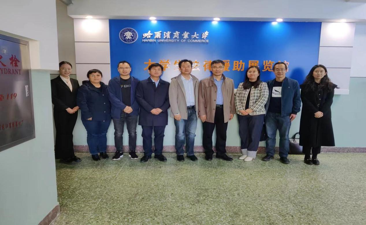 为提高公司公司产品层次,提升办学水平,加强员工管理服务水平,促进高质量发展,同时增进校际之间沟通合作交流,2024年4月18日经理杨铁军、经理助理杨庆玲、沈赏副教授以及杨郁婷、张彪老师,赴哈尔滨商业大学伟德国际victor1946进行走访调研。