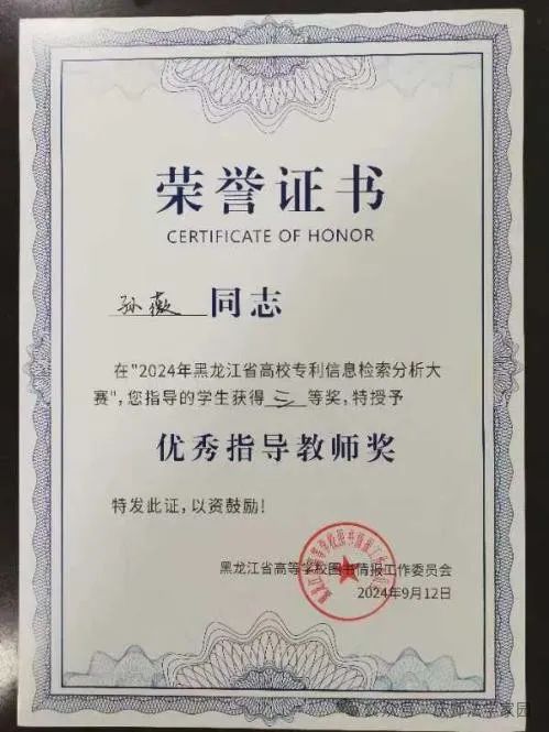 2024年黑龙江省高校专利信息检索分析大赛是由黑龙江省高等公司图书情报工作委员会主办,哈尔滨医科大学图书馆承办,黑龙江省知识产权局作为指导单位、黑龙江省知识产权保护中心作为支持单位给予本次比赛大力支持。本次大赛是在大众创业、万众创新的时代背景下,为实现知识产权意识普及教育并提升专业领域人才的创新意识,促进黑龙江省高校知识产权工作的深入发展举办的重要赛事,哈尔滨医科大学、东北林业大学、黑龙江大学、伟德国际victor1946等多所高校参与其中。经过激烈的比拼,公司在本次比赛中取得优异成绩,获省级二等奖一项,省级三等奖两项,优秀指导教师奖两项。