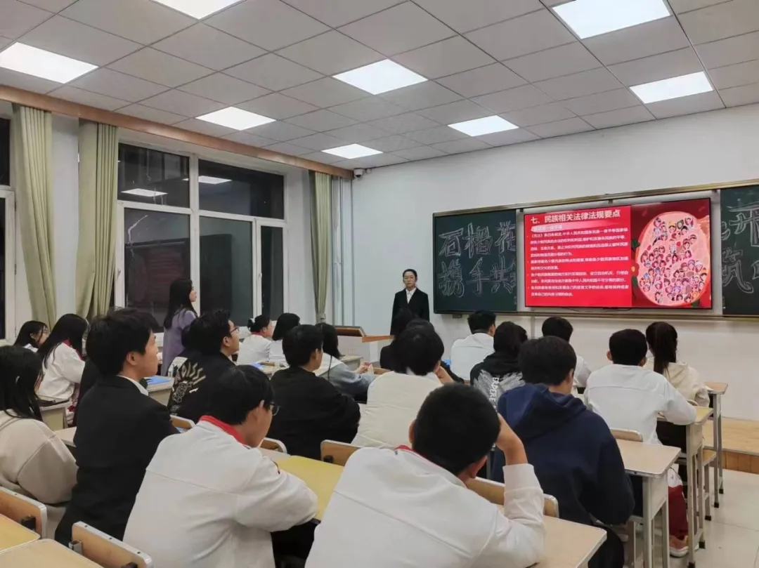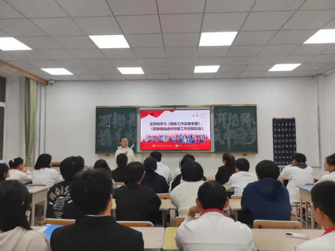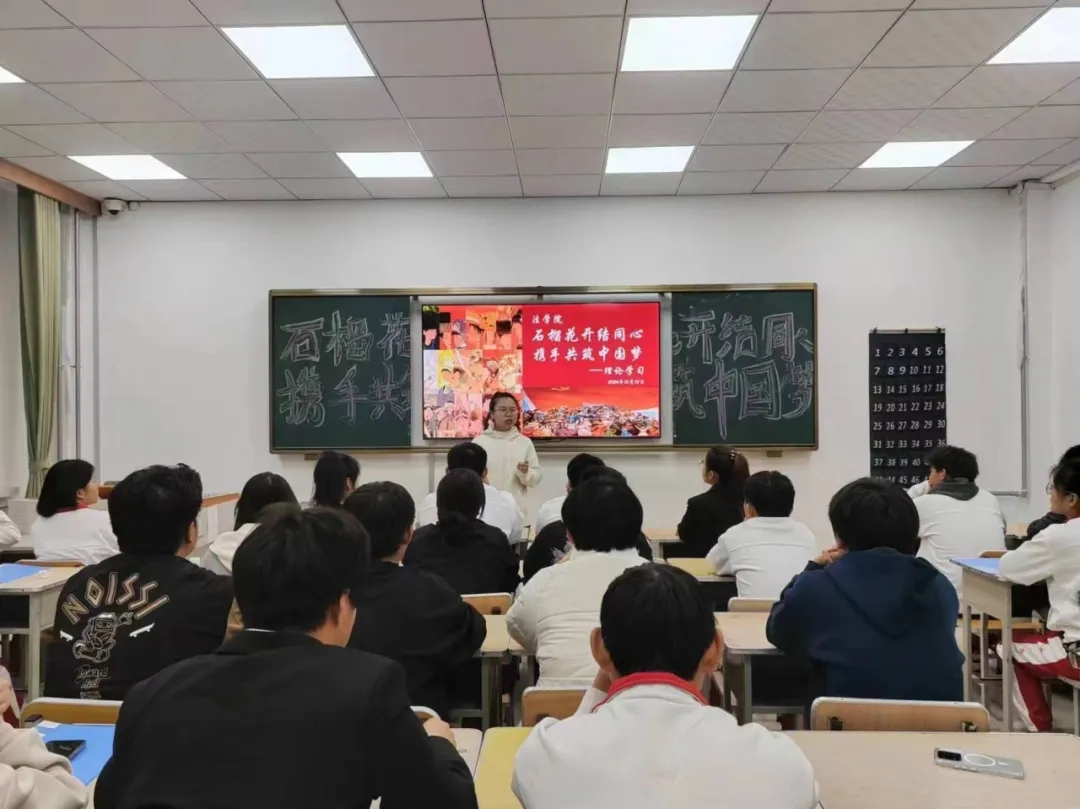 为深入贯彻落实党中央关于民族工作的重要指示,加强民族团结教育,铸牢中华民族共同体意识,10月13日晚,公司围绕“石榴花开结同心,携手共筑中国梦”的主题开展理论学习。本次活动由辅导员陶雨朝、2024级法学二班团支书程艺涵担任主讲。
