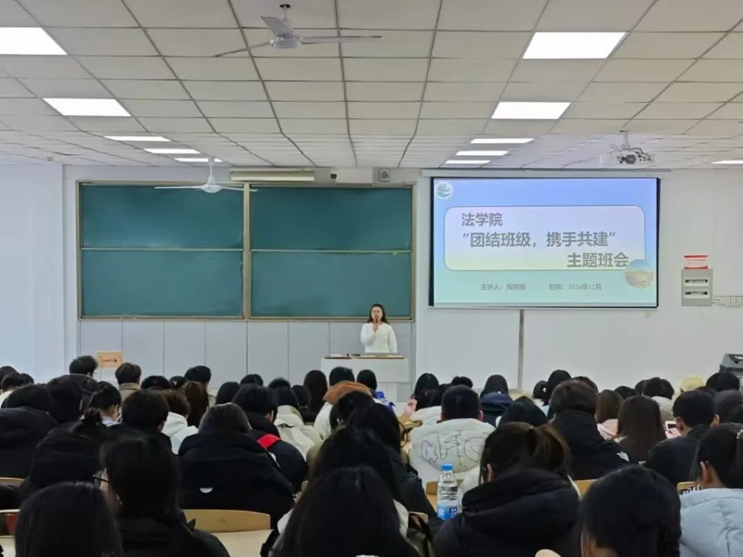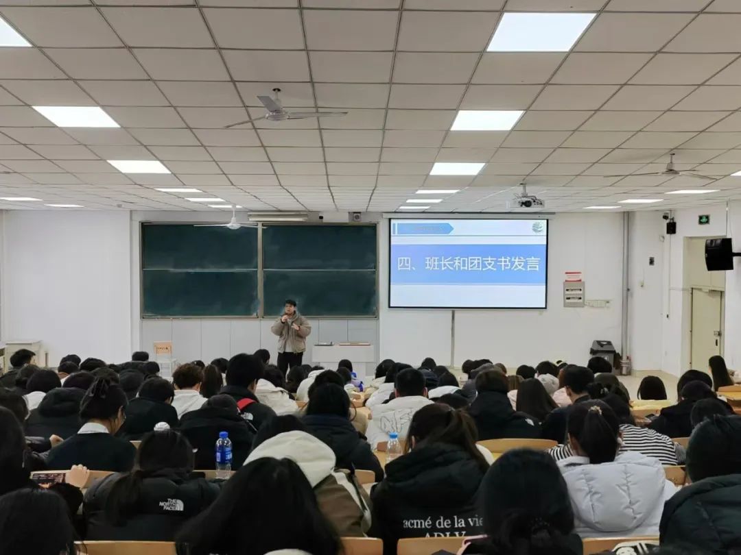 为加强班团组织建设,深化互帮互助、团结协作精神,提高班级凝聚力、战斗力和引领力,营造积极向上、凝心聚力、文明有序的班级寝室氛围,伟德国际victor1946于12月12日在主楼1-3召开2024级“团结班级,携手共建”主题班会,辅导员陶雨朝老师担任主讲人,2024级全体员工参加。