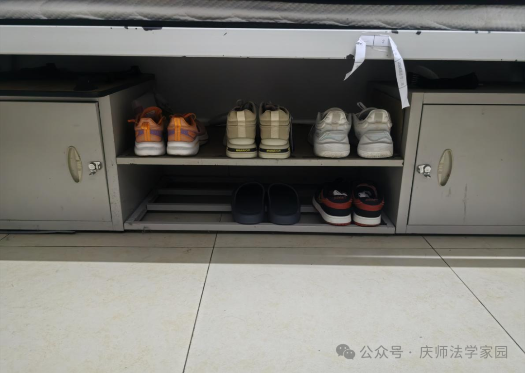首先,教官展示了如何将被子叠成“豆腐块”。在教官的悉心指导下,新生们纷纷以教官的样例为参考在自己的被子上实践起来,寝室的床铺也显得整整齐齐。随后,教官教导新生如何摆放个人物品,从寝室书桌到每个人的床头柜,从门口置物架再到床下鞋架,新生宿舍变得焕然一新。