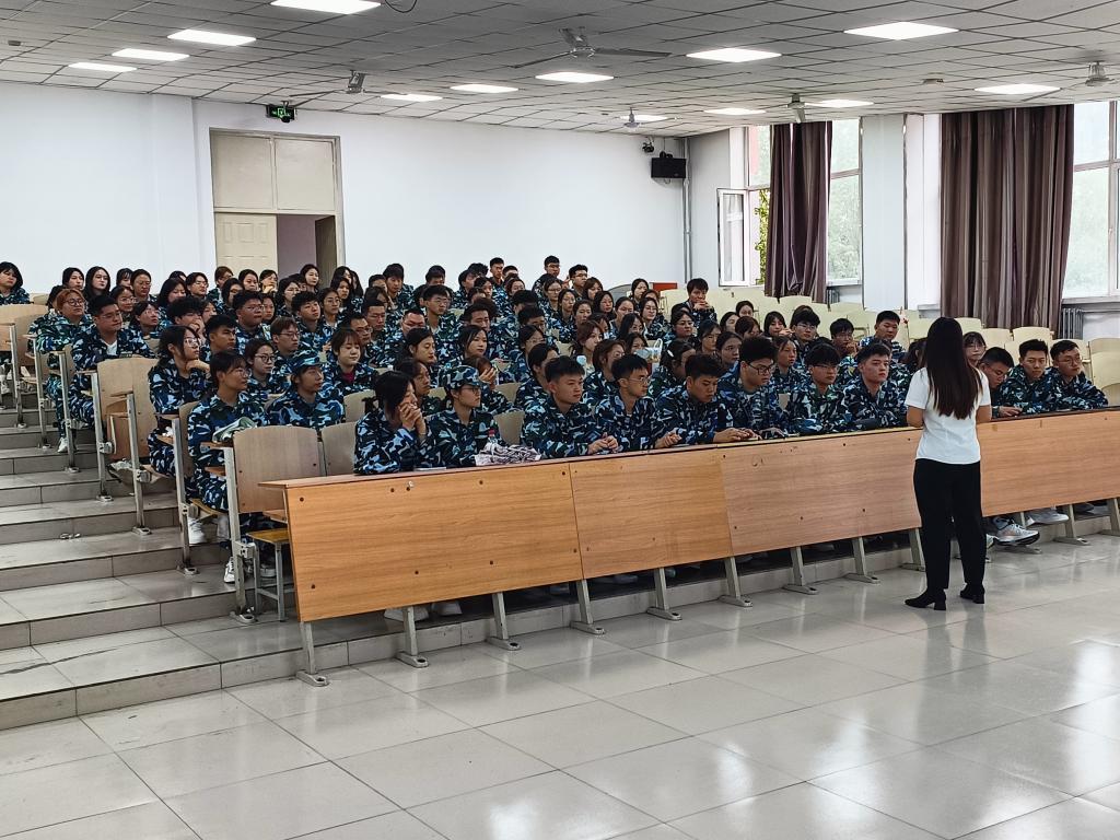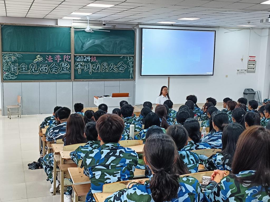 紧接着,陶老师就训练日程、场地、军训训练科目、军训口号、奖项设置等方面向2024级新生进行了详细的讲解。