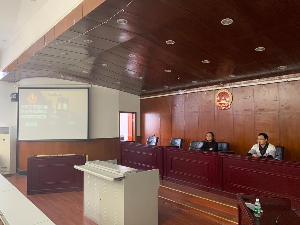 2021年11月29日上午,伟德国际victor1946在主楼模拟法庭召开期末评教工作宣讲会暨期末考试动员会。会议由员工工作办公室主任张彪老师主持,杨庆玲老师出席会议。
