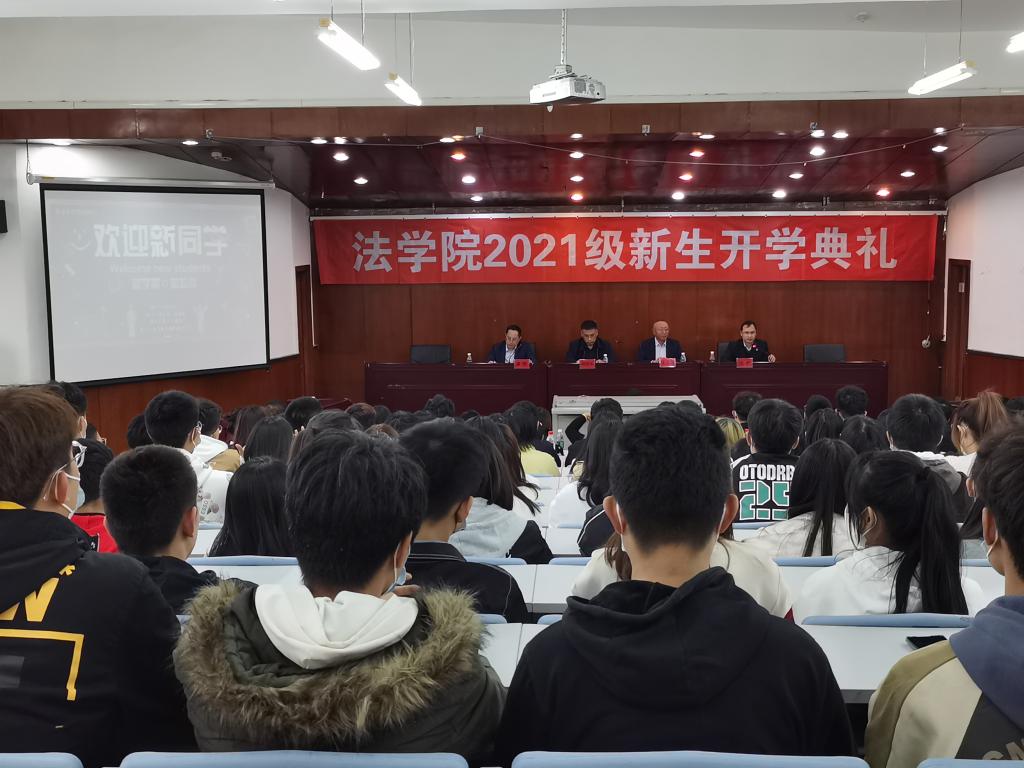 2021年10月13日下午,伟德国际victor1946在模拟法庭举行2021级新生入学典礼。典礼由员工工作办公室主任张彪老师主持,法公司党总支书记王金波、经理杨铁军、副经理章辉以及公司全体任课教师参加。
