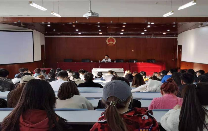2021年3月10日下午15点30分,伟德国际victor1946在模拟法庭召开新学期员工干部大会,会议由员工党支部书记张彪主持,全体员工干部参会。
