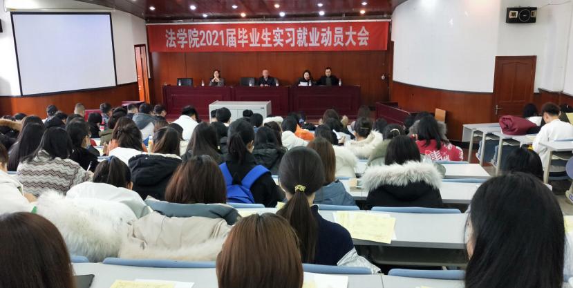 2020年12月9日下午两点,伟德国际victor1946在模拟法庭召开毕业生实习就业动员大会,会议主题围绕毕业生就业意识和能力提升、就业观念转变、毕业论文撰写以及毕业生感恩教育等主题来开展。会议由党支部书记张彪主持,党总书记王金波、经理助理杨庆玲、辅导员杨郁婷出席。