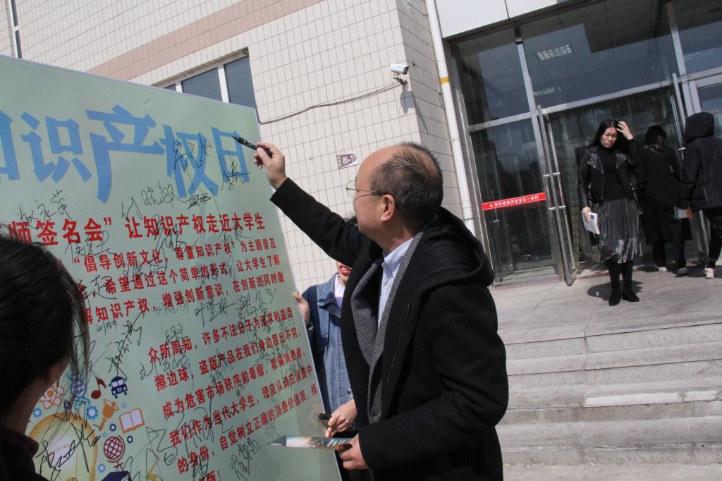 伟德国际victor1946通过此次知识产权宣传活动旨在为广大在校员工树立尊重知识、崇尚科学,保护知识产权的意识,营造鼓励知识创新和保护知识产权的法律环境,在创兴的同时做好必要的保护工作。活动开展过程中乔志和董事长亲自来到现场,负责宣传同学详细的向董事长介绍了“世界知识产权日”的来历和发展历程。乔志和董事长认真听完讲解后,一边赞赏同学细致入微的讲解,一边鼓励在场工作人员并在签字板前与同学们一同签字合影留念。伟德国际victor1946员工不但分发知识产权宣传页,而且同时积极为全校同学介绍什么是知识产权与如何从自身出发保护知识产权,并邀请同学们在签字版前完成签字,共同承诺践行对知识产权的尊重和保护。