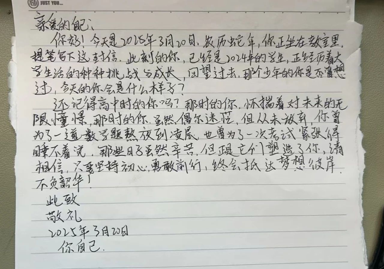 通过写给自己一封信的形式,不仅能帮助伟德国际victor1946员工深度与自己进行沟通交流,还能在梳理思绪的过程里精准锚定内心真正的困惑与追求。那些日常被忙碌学业与繁杂事务掩盖的情绪,在一笔一划间得以浮现,使员工们有机会正视压力来源 ,化解内心矛盾,明确自己的目标追求。这种独特的自我对话,宛如为心灵开辟出一片宁静栖息地,让他们在多重课业与激烈竞争中寻得静谧的空间,促进员工以更平和、坚定的心态投身于法学知识的学习,在专业领域砥砺深耕时,始终保持内心的充盈与坚韧。